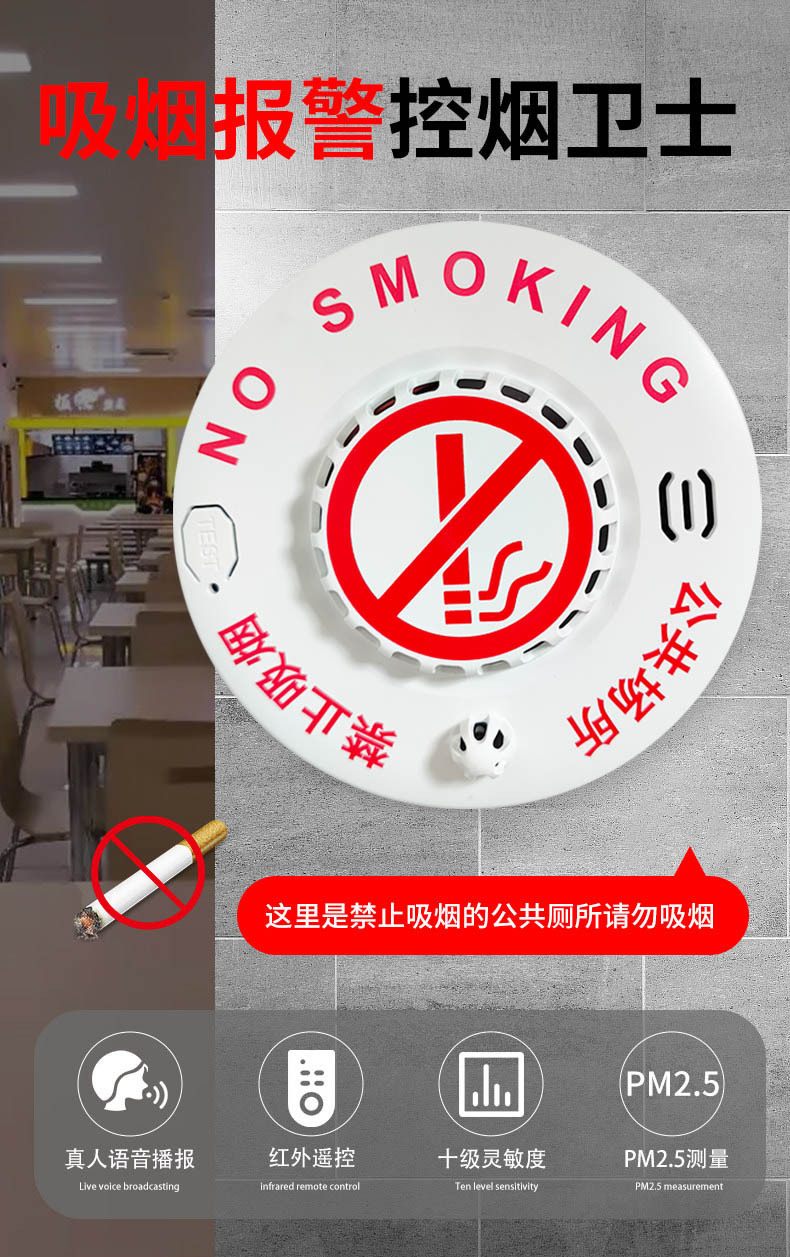 北京禁止吸煙報警器廁所高靈敏控煙衛(wèi)士禁煙探測衛(wèi)生間抽煙吸煙檢測儀